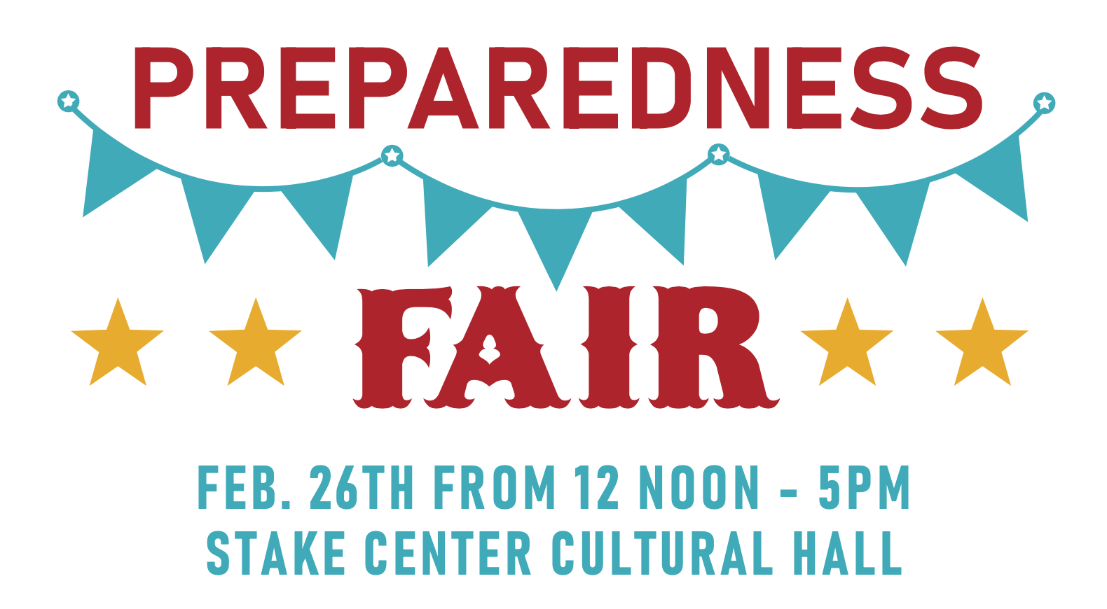 Join us for the Stake Preparedness Fair on Saturday, February 25, 2023 from 12PM to 5PM at the Stake Center Cultural Hall (10945 South 1700 East, Sandy UT 84092). Find everything you need to be prepared…one stop shopping. We will have points of purchase and food samples.